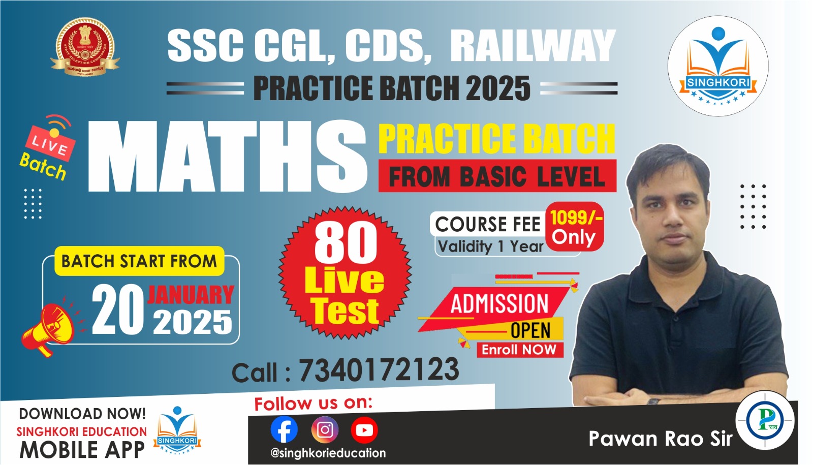 MATHS PRACTICE SPECIAL LIVE BATCH FOR SSC CGL 2025 , RAILWAY & CDS EXAMS BY PAWAN RAO SIR START FROM 20 JANUARY 2025